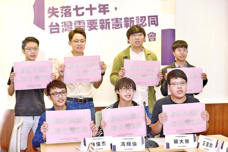 A coalition of youth groups yesterday urged lawmakers to draft a new constitution that would better reflect the separate governance of the two sides of the Taiwan Strait.