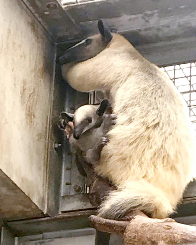 Hsiao Hung arrived in Taiwan in August 2018, was placed in the zoo’s Tropical Rainforest zone, and after mating with a male anteater, gave birth on May 10.