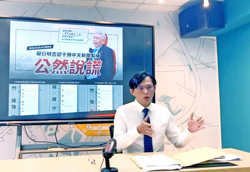 Former New Power Party legislator Huang Kuo-chang (黃國昌) yesterday accused Want Want China Times Media Group founder Tsai Eng-meng (蔡衍明) of lying to the National Communications Commission (NCC) during a public hearing on CTi News’ license renewal.