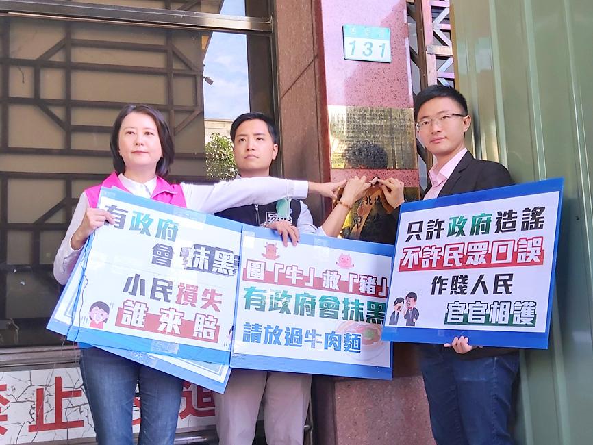 Separately yesterday, KMT Taipei City Councilor Wang Hung-wei (王鴻薇), New Party Taipei City Councilor Ho Han-ting (侯漢廷) and KMT Taichung City Councilor Lo Ting-wei (羅廷瑋) filed charges against Ting at the Taipei District Prosecutors’ Office, accusing him of breaching the Act Governing Food Safety and Sanitation (食品安全衛生管理法), which states that people who intentionally spread false information about food safety issues that incurs damage to the public or another person face a maximum prison term of three years or a fine of NT$1 million (US$34,710).