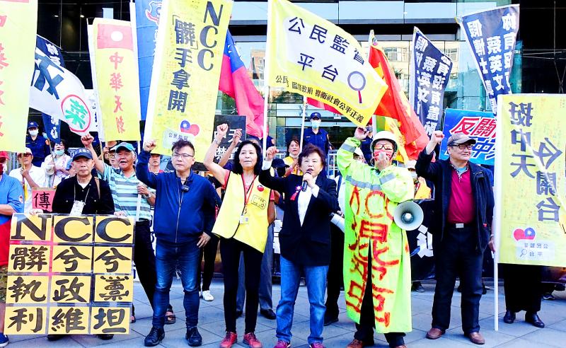 At the protest, former Chinese National Party (KMT) legislator Shen Chih-hwei (沈智慧) said the government had used the commission to shut down a news channel, and the reasons that it gave for the decision went completely against freedom of the press.