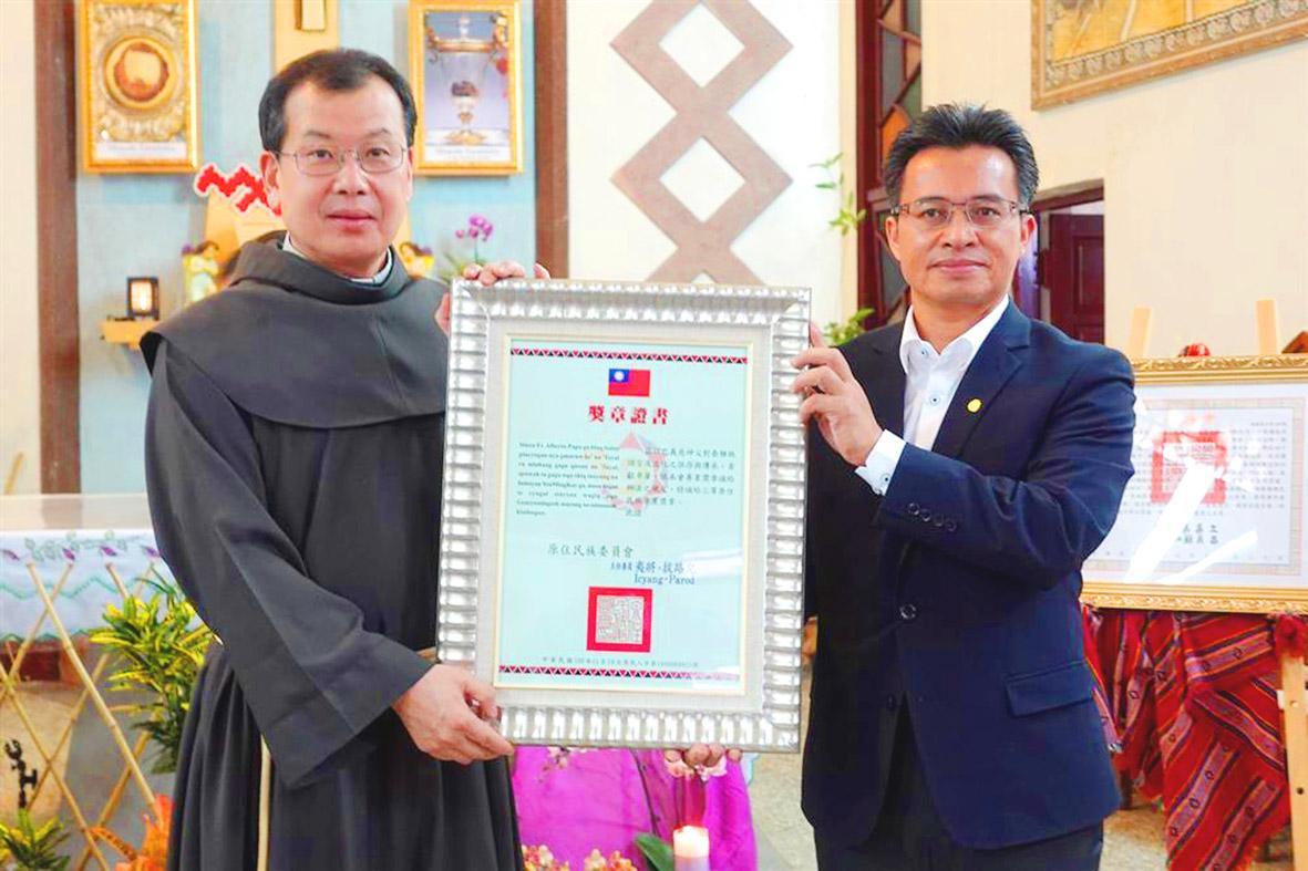 At the mass, Council of Indigenous Peoples deputy head Qucung Qalavangan gave the head of the Order of Friars Minor a national professional medal on behalf of Father Alberto.