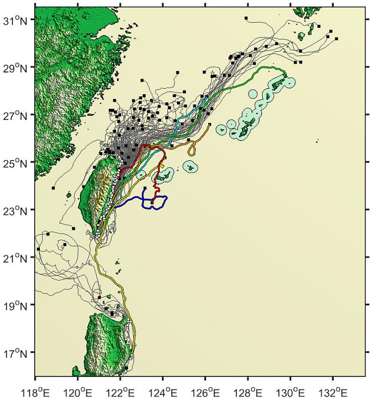 Of the 122 buoys that drifted past Taiwan, 114 were carried northward by the Kuroshio, and of these, only three came within 20km of the central and southern Ryukyu Islands, the researchers found.