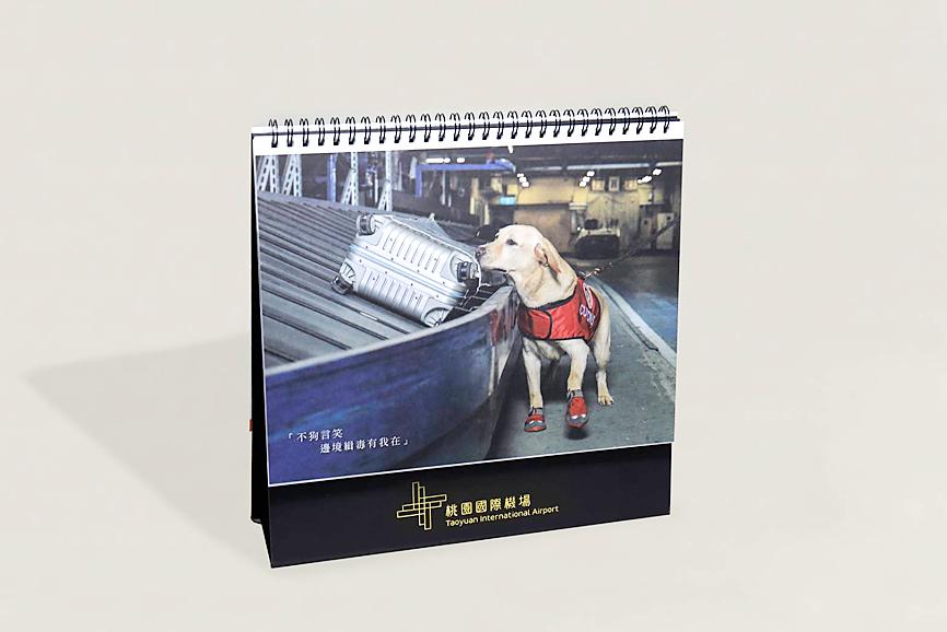 Airport service personnel, cargo aircraft and sniffer dogs are some of the photographs featured in next year’s desk calendar published by Taoyuan International Airport Corp, which unveiled the calender yesterday.