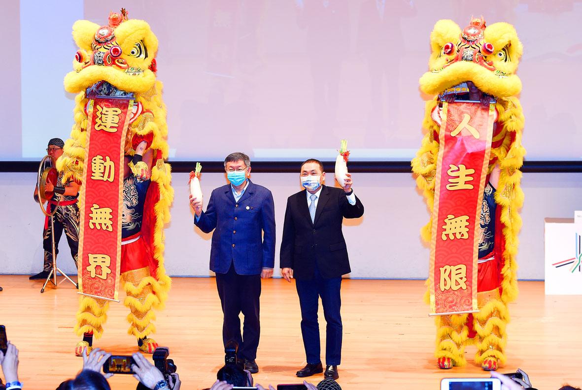 Taipei Mayor Ko Wen-je (柯文哲) and New Taipei City Mayor Hou You-yi (侯友宜) formalized the agreement in a video call with Kai Holm and Jens Holm, president and chief executive officer respectively of the International Masters Games Association, which organizes the event.