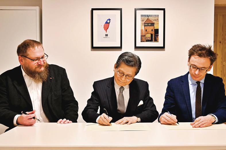 With Representative to Poland Weber Shih (施文斌), foundation president Piotr Cywinski and director-general Wojciech Soczewica signing a memorandum of understanding in Warsaw, Taiwan has become the first Asian nation to join the organization’s group of donors, the foundation said.