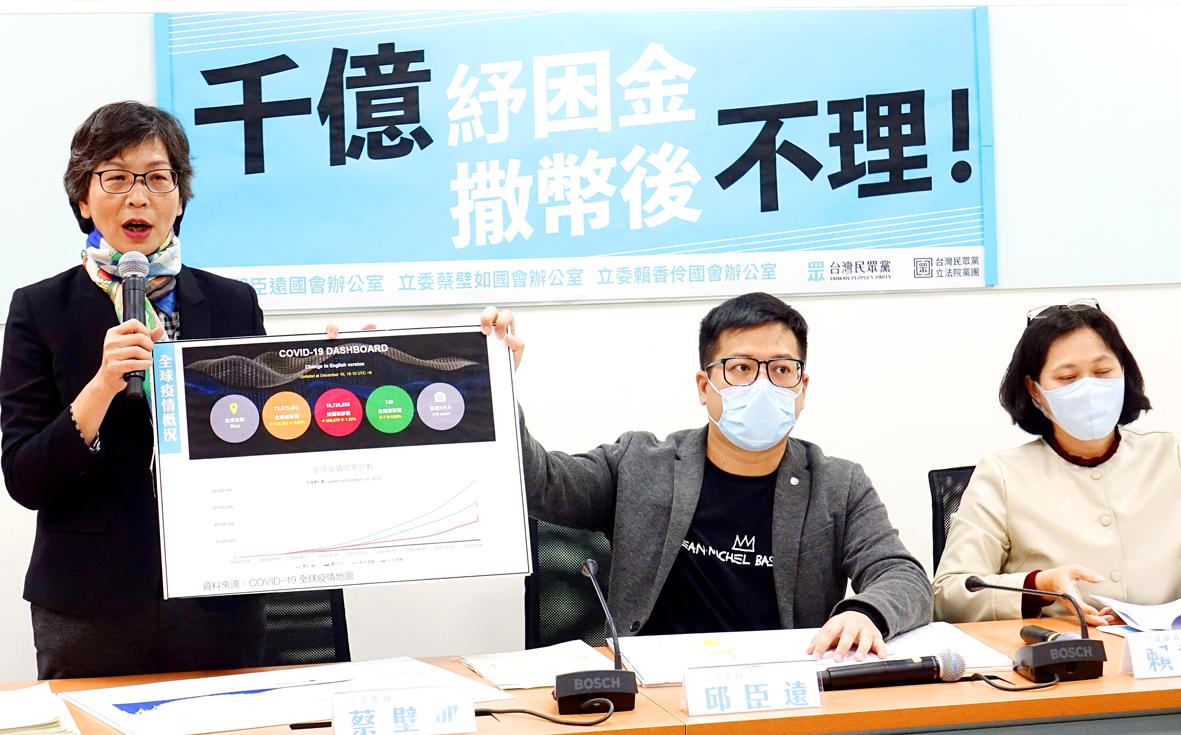 TPP caucus whip Lai Hsiang-ling (賴香伶) said that the party supported the relief program after making clear its expectation that the government would present a full account of it.