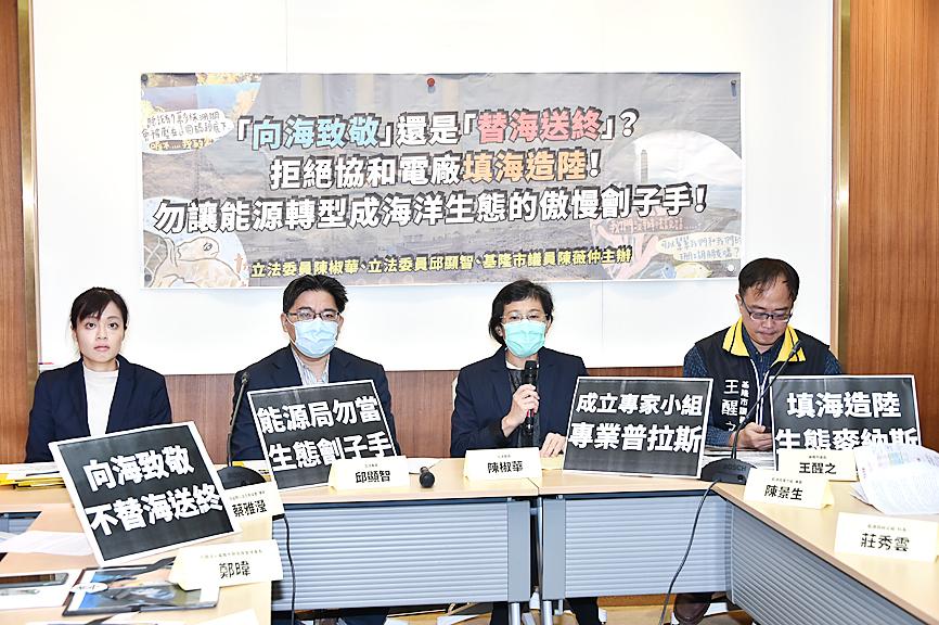 The land reclamation project would greatly affect marine life and the livelihoods of fishers in the area, NPP Legislator Chen Jiau-hua (陳椒華) told a news conference at the Legislative Yuan in Taipei.