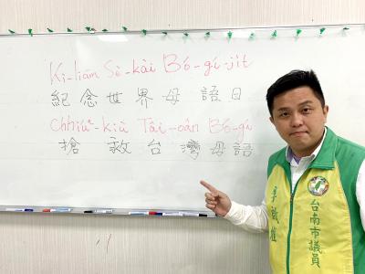 CHANGING IT UP: With Bopomofo rarely used outside of Taiwan, the lawmaker said that Romanization would help the government in its internationalization efforts Tainan City Councilor Lee Chi-wei (李啟維) yesterday called for the use of Romanized spellings to make Taiwanese dialects and languages internationally recognizable. Speaking at a news conference in Tainan to mark International Mother Language Day, Lee said the use of zhuyin fuhao (注音符號, Mandarin phonetic symbols commonly known as Bopomofo) made it difficult to promote interest in, or recognition of, the nation’s dialects and languages, as the system is not commonly used outside of Taiwan. “The legislature has already passed the Development of National Languages Act (國家語言發展法), but under the current circumstances that act is like a candle in the wind,” he