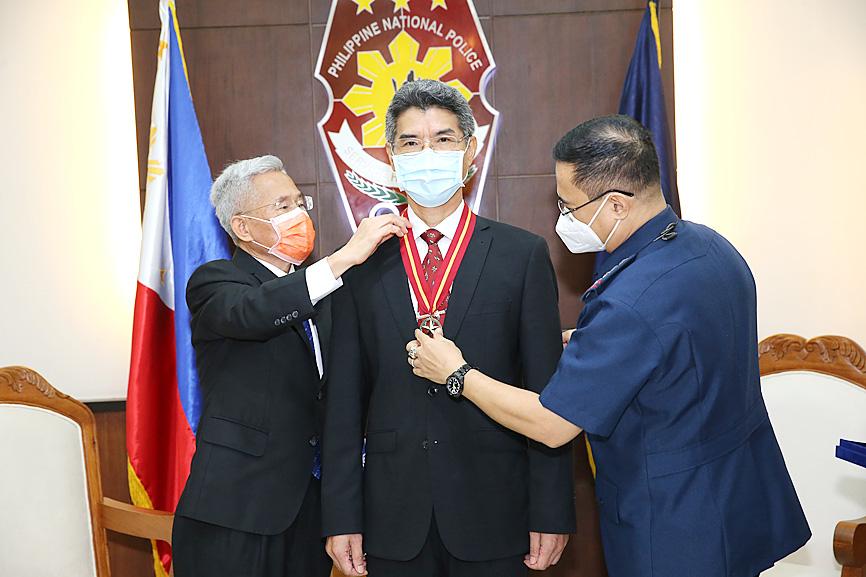 Then-PNP chief Archie Gamboa awarded him the medal in a ceremony attended by Representative to the Philippines Michael Hsu (徐佩勇), Wang said yesterday.