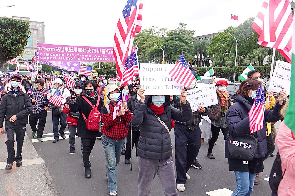 People rallied in Taipei yesterday to support US President Donald Trump and called for Taipei and Washington to normalize the relationship between the two nations.