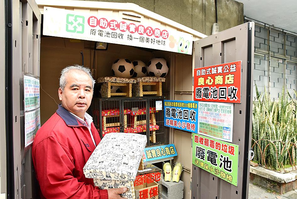 His recycling kiosk, which is next to the county’s Environmental Protection Bureau, is the first of its kind in Taiwan, he added.