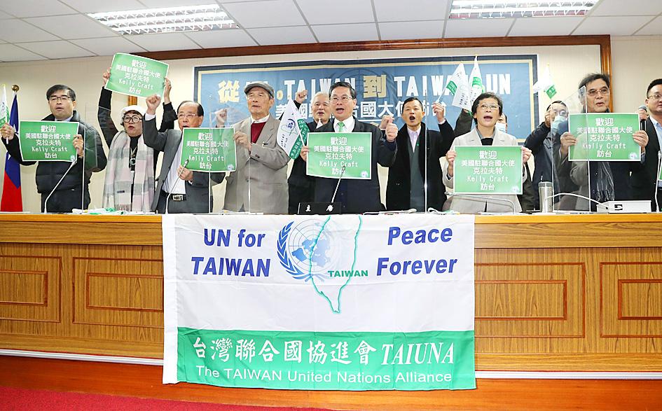 Nearly 20 organizations yesterday called on President Tsai Ing-wen (蔡英文) to use the opportunity afforded by US Ambassador to the UN Kelly Craft’s visit this week to pursue US support for Taiwan’s participation in the UN.