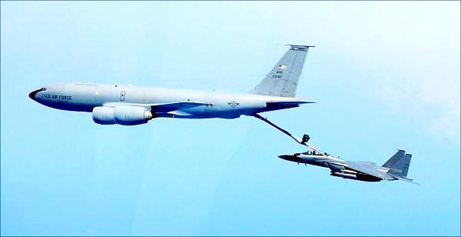 A report published by Alert 5 on Tuesday said that automatic dependent surveillance–broadcast (ADS-B) data captured by planfinder.net on Wednesday last week showed a US Air Force KC-135 tanker “coming less than 1,000 feet [305m] vertically with EVA Air flight BR225 as both aircraft crossed path south of Taiwan” that morning.