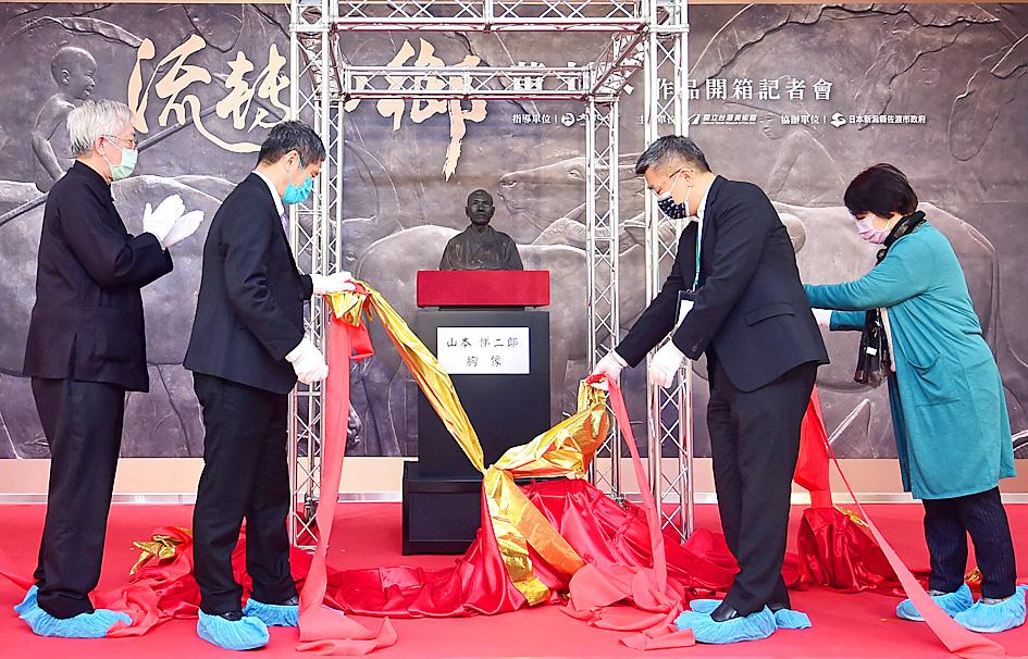 The National Taiwan Museum of Fine Arts on Friday held an unboxing ceremony for Taiwanese sculptor Huang Tu-shui’s (黃土水) bust of Japanese agronomist, entrepreneur and politician Teijiro Yamamoto, which arrived last month from Sado in Japan’s Niigata Prefecture, on a three-year loan to the museum.