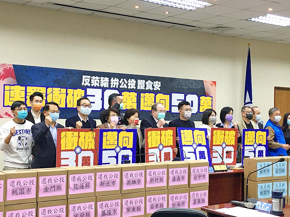 The Chinese Nationalist Party (KMT) yesterday said it has collected more than 320,000 signatures backing its petition to hold a national referendum on the importation of pork containing the animal feed additive ractopamine.