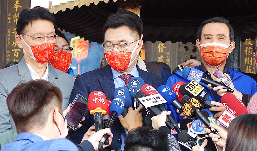 Jiang and Jaw joined Ma at the temple, and their interactions were closely watched by the news media, as Jaw last week announced his bid to enter the KMT’s presidential primary, about a week after he announced his return to the party after leaving it in 1993.