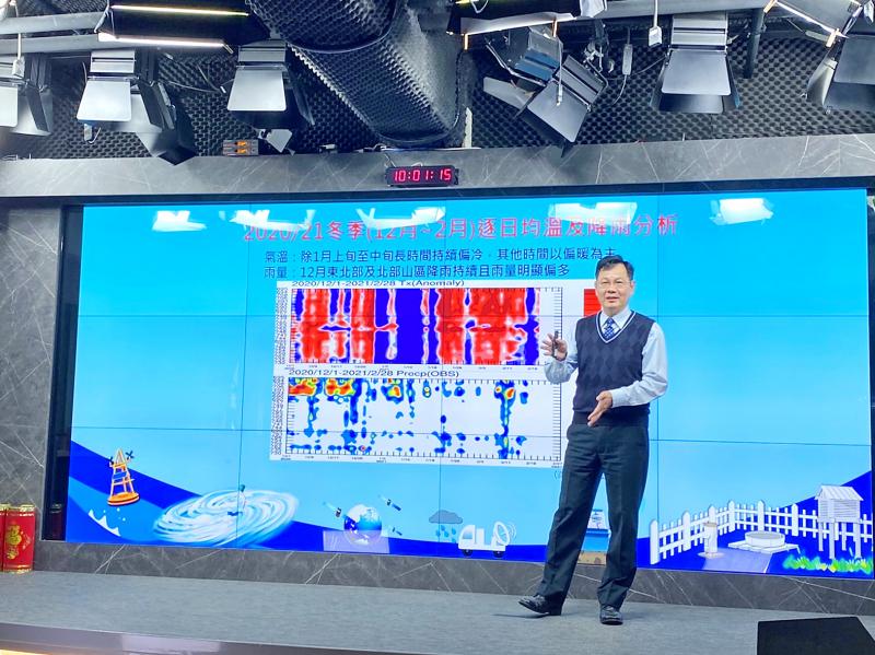 Bureau data showed that Taiwan was under the influence of cold waves for eight days from December last year to last month, more than the average of three-and-a-half days, Weather Forecast Center Director Lu Kuo-chen (呂國臣) said.