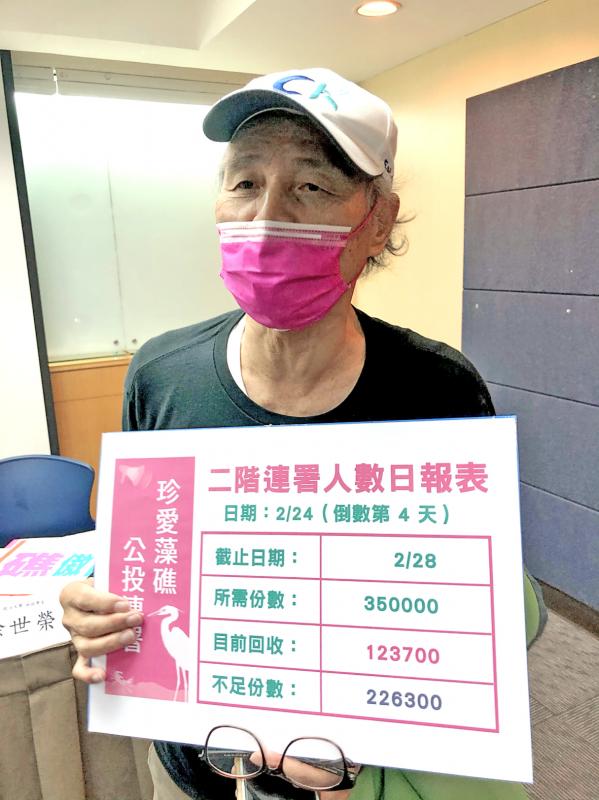 Rescue Datan’s Algal Reefs Alliance convener Pan Chong-cheng (潘忠政) last year initiated a referendum proposal to protect the reefs.