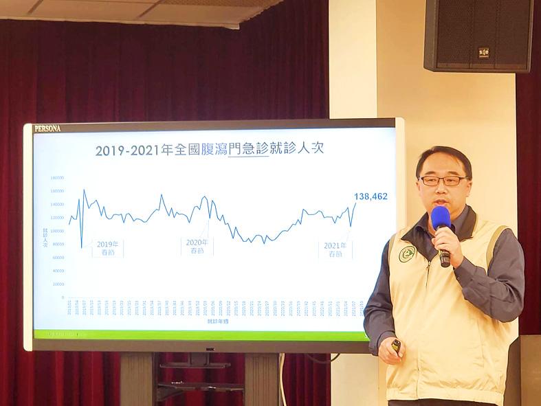 People often get together and enjoy meals with family and friends during the Lunar New Year holiday, so diarrhea cases often increase after the holiday, CDC physician Lin Yung-ching (林詠青) said.