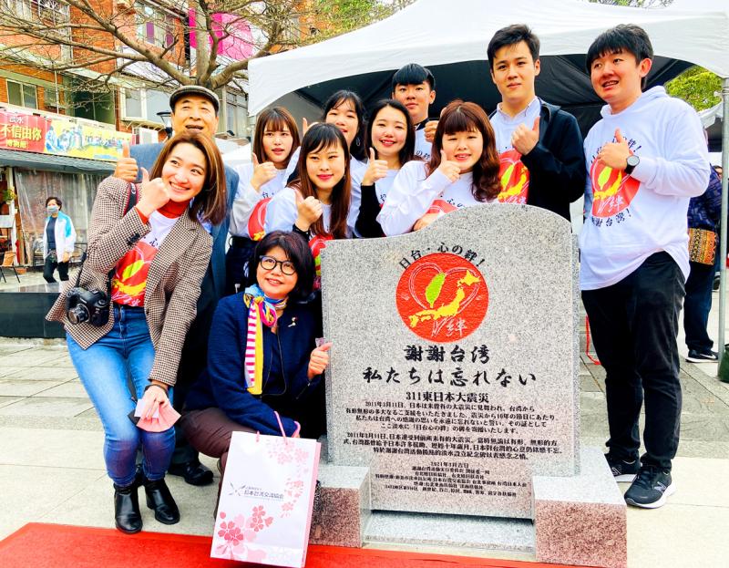 A group of Japanese residents yesterday unveiled a stone plaque in New Taipei City’s Tamsui District (淡水) in commemoration of Taiwan’s assistance following an earthquake and tsunami that struck Japan on March 11, 2011.