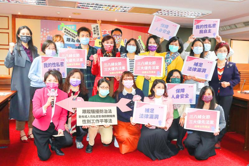 On International Women’s Day yesterday, a group of legislators and civil groups called for the swift passage of a suite of legislation to address stalking, workplace harassment and revenge pornography, which are languishing in committee.