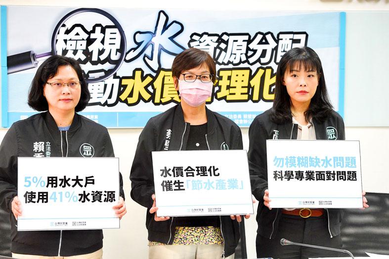 Taiwan’s average water price is the second-lowest in the world, and there are no incentives to push businesses and people to install water conservation systems, TPP Legislator Tsai Pi-ru (蔡壁如) said.