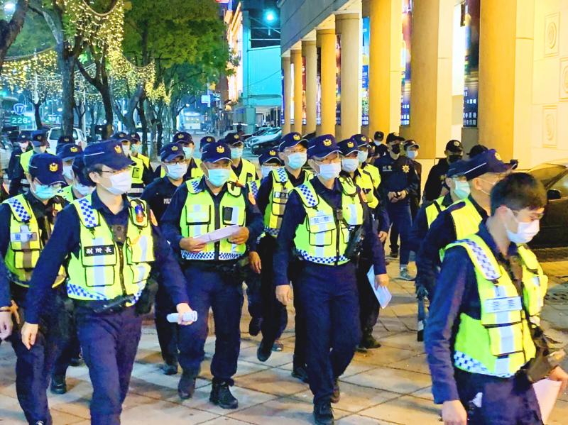Kaohsiung police prepare for a firearms search at a nightclub early yesterday as part of a campaign to remove firearms from the streets after several shootings in the city. Kaohsiung Mayor Chen Chi-mai said the campaign would continue until city residents are satisfied that public order has been restored.