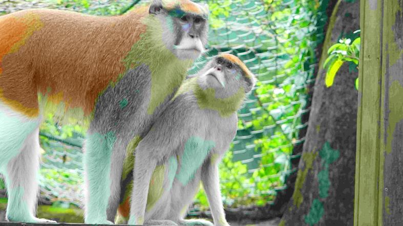 According to the zoo’s Web site, Patas monkeys are indigenous to semi-arid areas on the southern edge of the Sahara. They have reddish backs, white undersides and mostly gray faces, while the males have distinctive white mustaches.