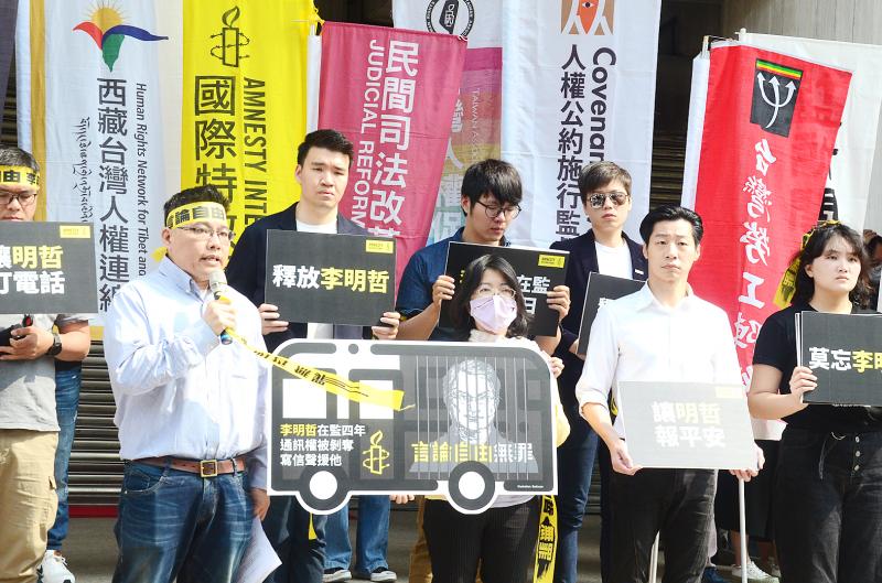 Lee is not allowed to send letters or make telephone calls from prison, Amnesty International Taiwan secretary-general Chiu Ee-ling (邱伊翎) said at a news conference outside the Legislative Yuan in Taipei.
