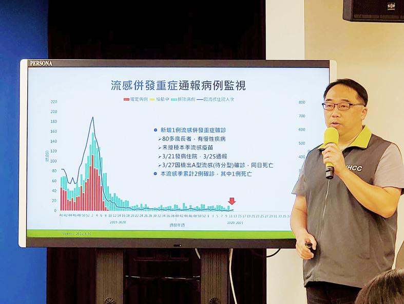 The deceased was a man in his 80s who did not get vaccinated against the flu this season — which started in October — and was infected with the type A influenza virus, Centers for Disease Control (CDC) Epidemic Intelligence Center Director Guo Hung-wei (郭宏偉) said.
