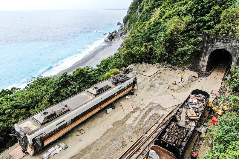 As of 11am yesterday, a notice on the Taiwan Railways Administration’s (TRA) Web site said that service on the southbound track between Heren (和仁) and Chongde (崇德) stations where the accident occurred is expected to resume tomorrow morning.