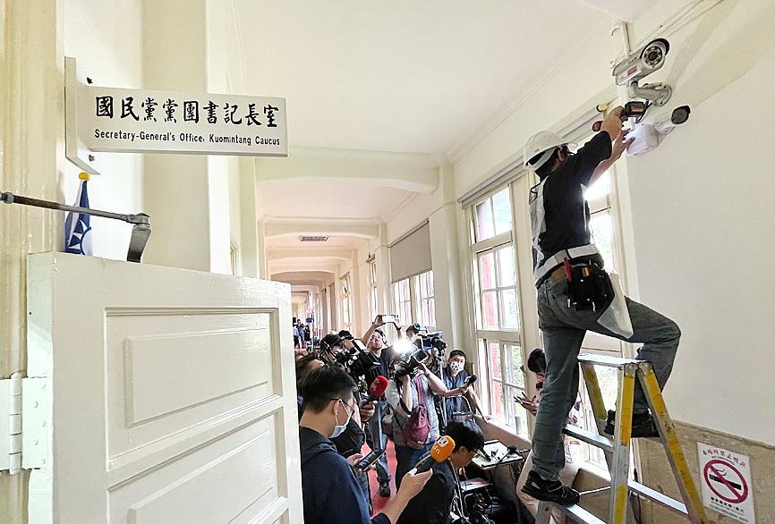 The Chinese Nationalist Party (KMT) caucus yesterday accused the government of conducting “surveillance of the opposition” after the installation of CCTV cameras in front of its office in the Legislative Yuan in Taipei.