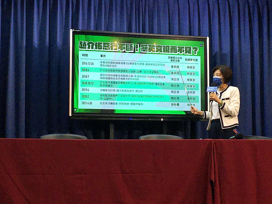 At a news conference in Taipei yesterday, KMT Culture and Communications Committee director-general Alicia Wang (王育敏) said the DPP’s expulsion of Chao Chieh-yu was merely an attempt to stop the scandal spreading.