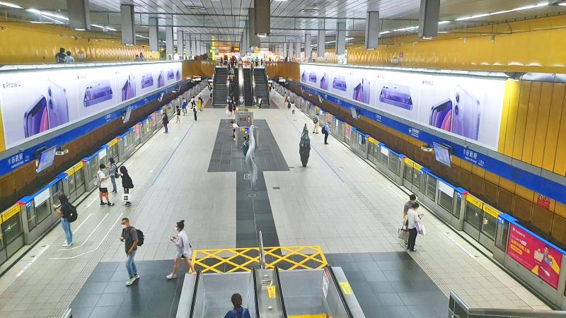 On Saturday, the number of people traveling on the Taipei MRT dropped by 1 million passengers after the center raised the COVID-19 alert for Taipei and New Taipei City to level 3 in light of surging cases in the two cities, Taipei Rapid Transit Corp (TRTC) said yesterday.