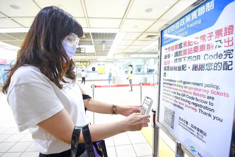 To make registration easier, the Executive Yuan on Wednesday last week launched free registration by SMS, which allows people to scan an establishment’s QR code with their smartphone upon entering and send a record of their visit to the 1922 hotline via text message.