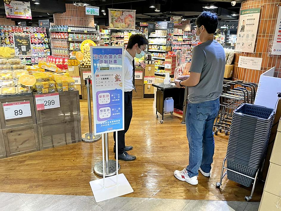 “The ministry instructs supermarkets, convenience stores, department stores and other shops to thoroughly implement crowd control,” Deputy Minister of Economic Affairs Chen Chern-chyi (陳正祺) said. “We also urge people to buy more per visit and go shopping less often.”