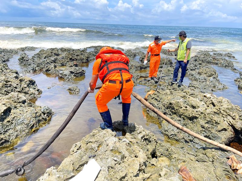 They said they were worried that the oil would drift farther south and affect waters near Kenting National Park in Pingtung County’s Hengchun Township (恆春), which contains valuable coral ecosystems.