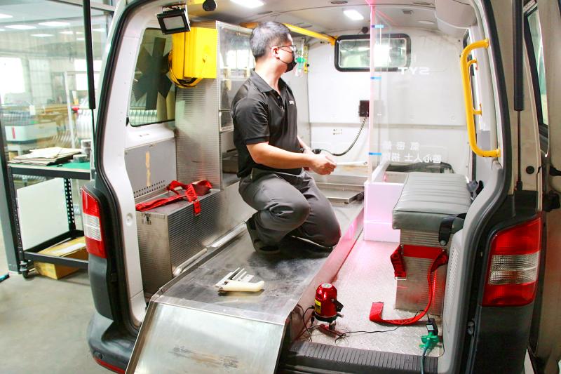 He designed a booth made of transparent acrylic and other materials after the Taichung City Fire Bureau, which also provides emergency medical services, came to him for help last month.