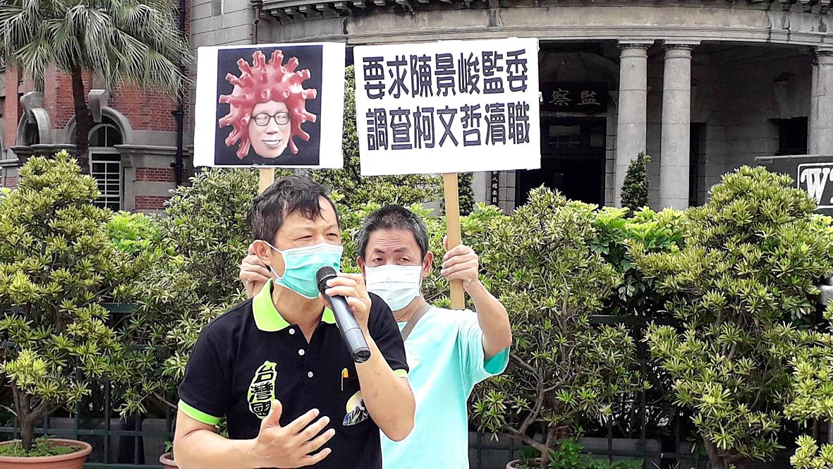 The group said that Control Yuan member Chen Chin-jun (陳景峻) should initiate an investigation into the mayor, who they say “is responsible for the current infection situation in Taipei.”