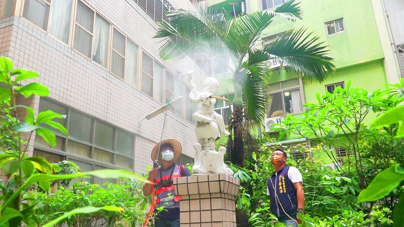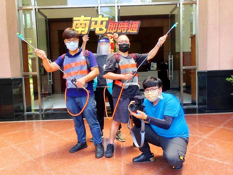 Four volunteers in Taichung’s Nantun District (南屯) have helped disinfect half the district in less than a month.