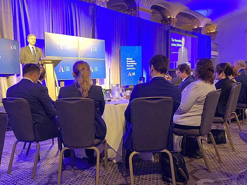 US Secretary of State Antony Blinken, US Secretary of Defense Lloyd Austin, US Secretary of Commerce Gina Raimondo and US National Security Adviser Jake Sullivan delivered speeches in person, the Taipei Economic and Cultural Representative Office (TECRO) in the US said in a news release yesterday, which included a photograph of Hsiao at the meeting in Washington.