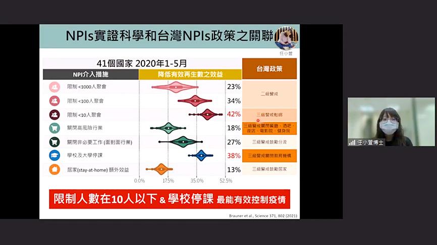 While Taiwan has lowered the nationwide COVID-19 alert to level 2, it should continue to implement NPIs as a key measure to contain the virus, especially in the face of the Delta variant spreading around the world, he added.