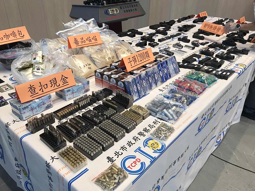 Rifles, submachine guns and semi-automatic shotguns were among the weapons recovered during the raids, the Taipei Police Department’s Criminal Investigation Division said on Friday.