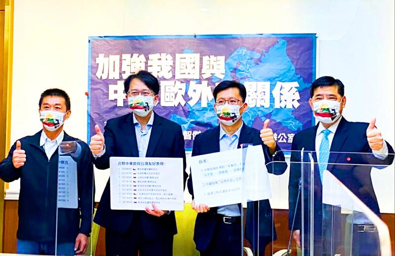 Association members Democratic Progressive Party (DPP) legislators Chiu Chih-wei (邱志偉), Chang Liao Wan-chien (張廖萬堅) and Hsu Chih-chieh (許智傑) urged the Ministry of Foreign Affairs to step up collaboration with the legislature to bolster Taiwan’s diplomatic outreach efforts to central and eastern European countries.