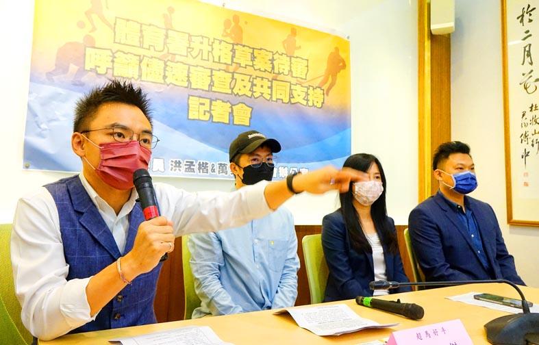 Chinese Nationalist Party (KMT) legislators Hung Meng-kai (洪孟楷) and Wan Mei-ling (萬美玲) yesterday called for the upgrading of the Sports Administration into a ministry to ensure proper funding and management of national sports.
