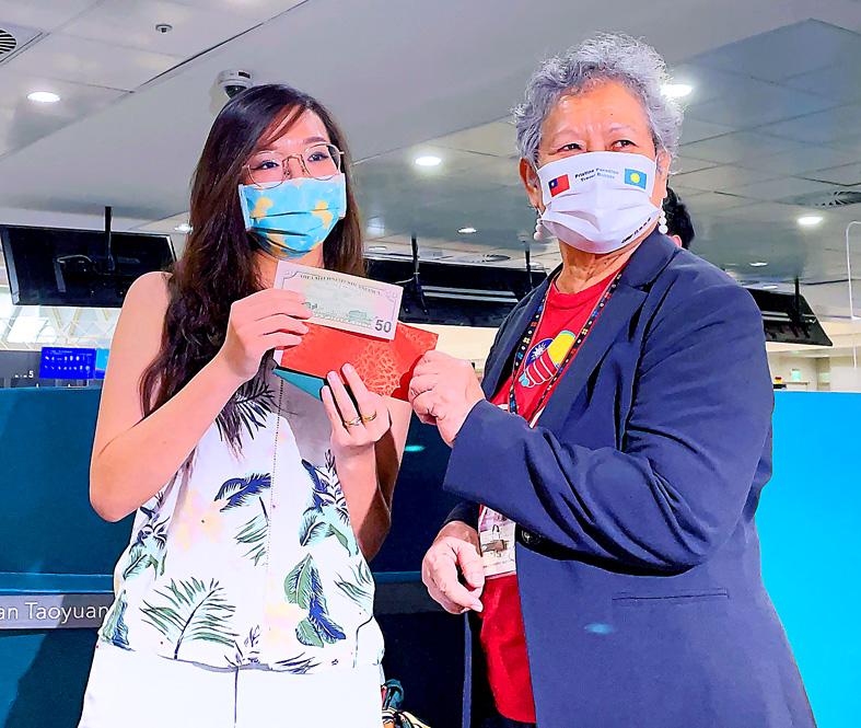 Palauan Ambassador to Taiwan Dilmei Olkerii was at the airport to see the flight off and gave each passenger US$50 of travel vouchers to use in Palau.