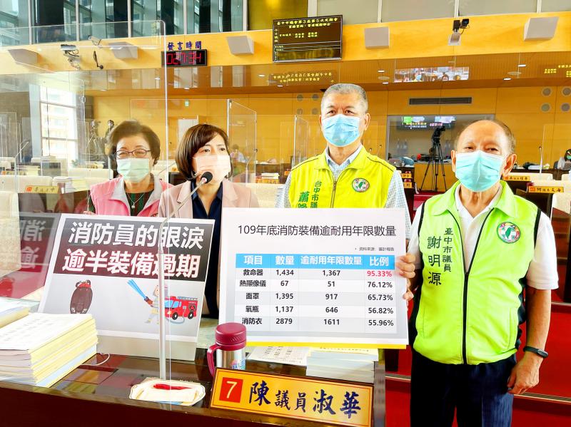 Much of the Taichung Fire Bureau’s personal protective equipment has exceeded its service life, Taichung city councilors said.