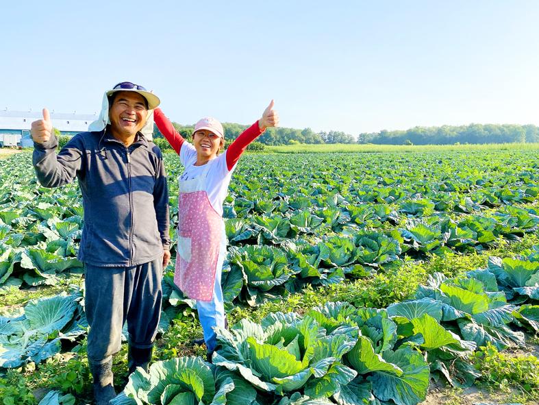 On her family’s farm in Whitchurch-Stouffville, north of Toronto, 45-year-old Hsieh Mu-hsun (謝沐薰) tends to more than 7,000 heads of cabbage.