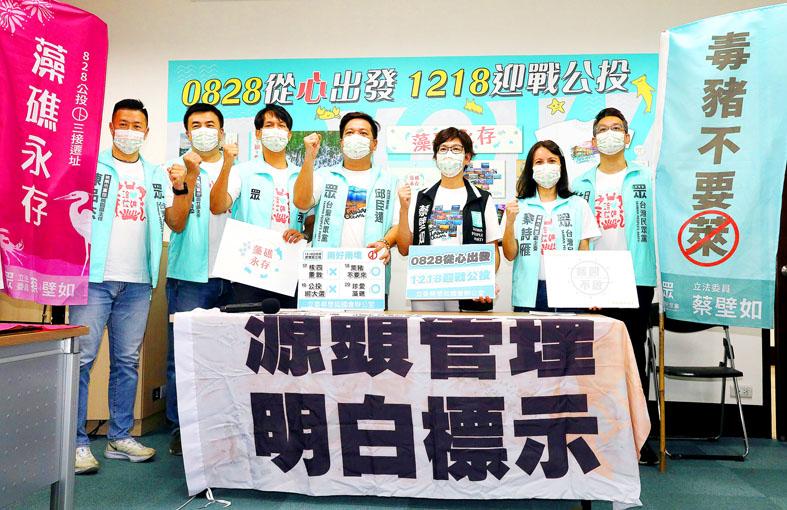 On the ballot are proposals to protect the algal reefs in Datan Borough (大潭) in Taoyuan’s Guanyin District (觀音), ban pork imports containing ractopamine, combine referendum votes with national elections, and restart work on the mothballed Fourth Nuclear Power Plant in New Taipei City’s Gongliao District (貢寮).